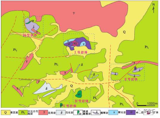 學者經勘探分析認為:II號巖體具有較好銅鎳的成礦條件,具有較大的找礦潛力。