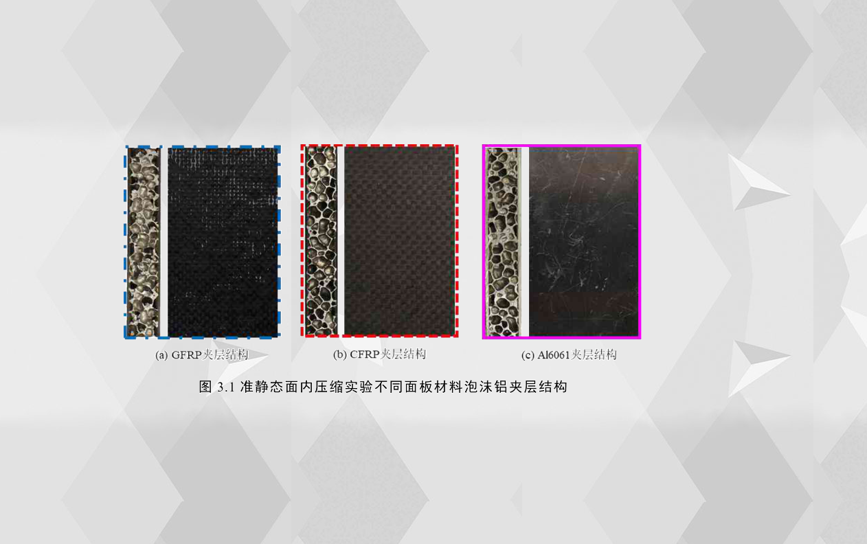 泡沫鋁夾層結(jié)構(gòu)在汽車應(yīng)用中所承載的另一種典型工況為面內(nèi)壓縮,例如泡沫鋁填充引擎蓋、側(cè)門等,例如泡沫鋁填充的前縱梁,當(dāng)汽車發(fā)生正面碰撞交通事故時(shí),當(dāng)沖擊速度較大時(shí),引擎蓋、側(cè)門會(huì)發(fā)生較大的擠壓面內(nèi)變形,而夾層結(jié)構(gòu)在面內(nèi)壓縮工況下的失效機(jī)理和吸能特性也是相當(dāng)復(fù)雜的,為了推動(dòng)夾層結(jié)構(gòu)在汽車上的應(yīng)用,對(duì)泡沫鋁夾層結(jié)構(gòu)在面內(nèi)壓縮工況下全面系統(tǒng)的研究是很有必要的。本章主要通過(guò)實(shí)驗(yàn)的方法,揭示了不同配置的泡沫鋁夾層結(jié)構(gòu)在準(zhǔn)靜態(tài)面內(nèi)壓縮工況下的結(jié)構(gòu)響應(yīng)機(jī)理、失效模式以及耐撞性能,得出何種配置的泡沫鋁夾層結(jié)構(gòu)的耐撞性能更優(yōu),泡沫鋁夾層結(jié)構(gòu)的配置參數(shù)主要包括面板材料、面板厚度、芯層高度和芯層密度。